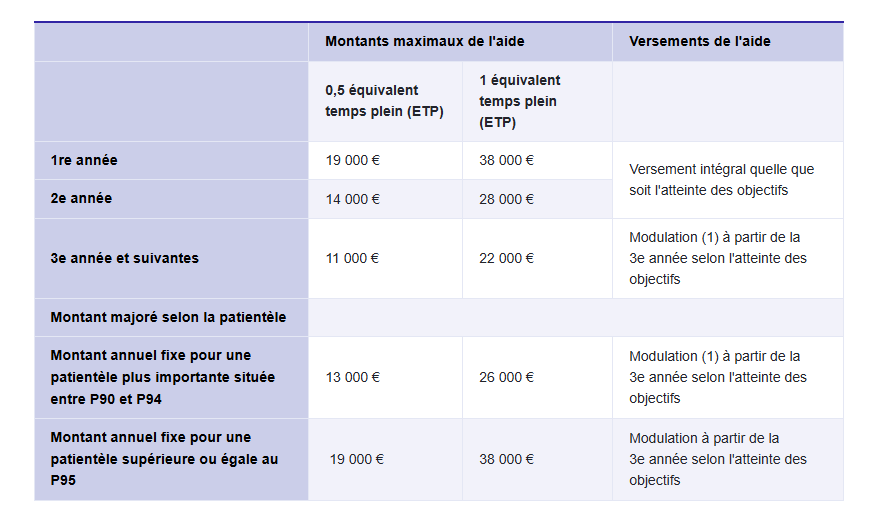 Ces aides sont accordées dans le cadre conventionnel et varient selon le temps de travail et les engagements du cabinet.