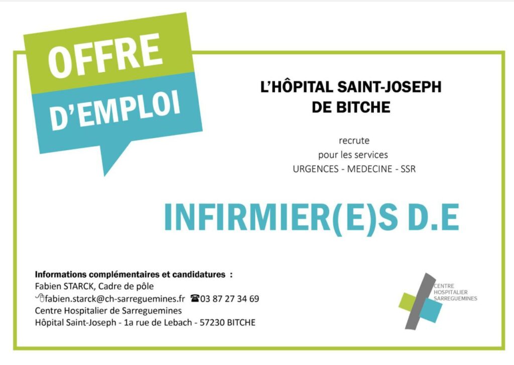 Le centre hospitalier de Bitche recherche EN URGENCE des infirmier(e)s pour renforcer ses équipes.